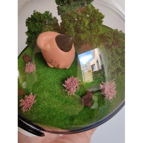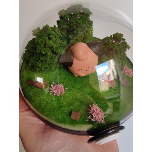 Diorama fait main accueillant une figurine pokemon de Melo.