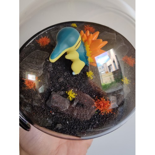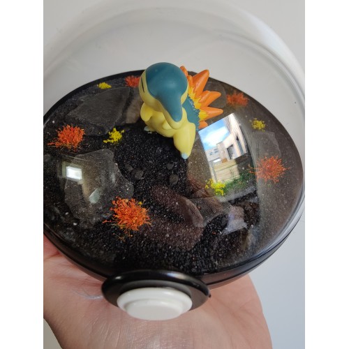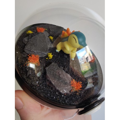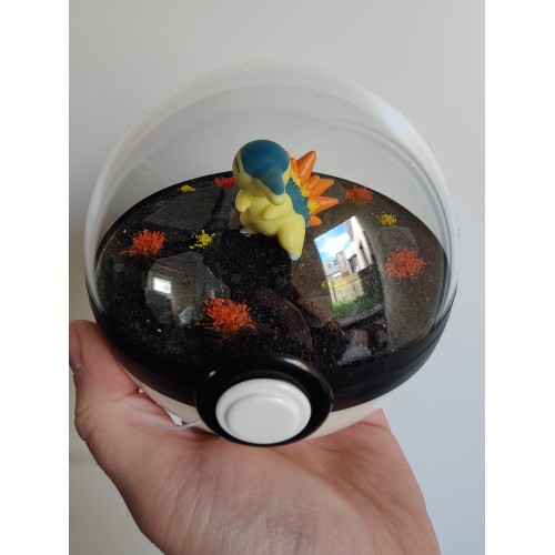 Diorama fait main accueillant une figurine pokemon de Hericendre.