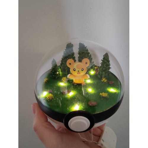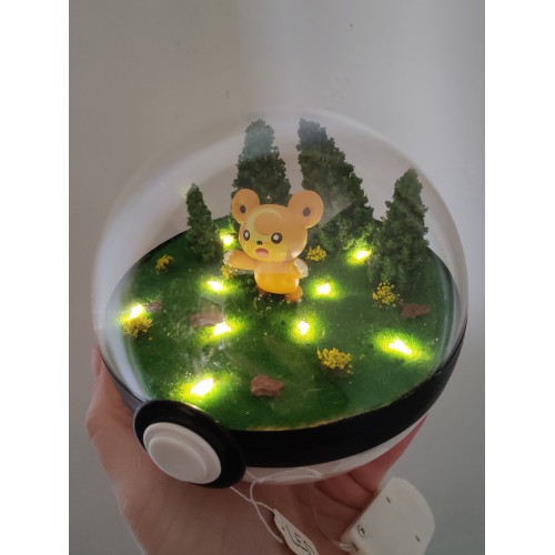 Diorama fait main accueillant une figurine pokemon de Teddiursa.