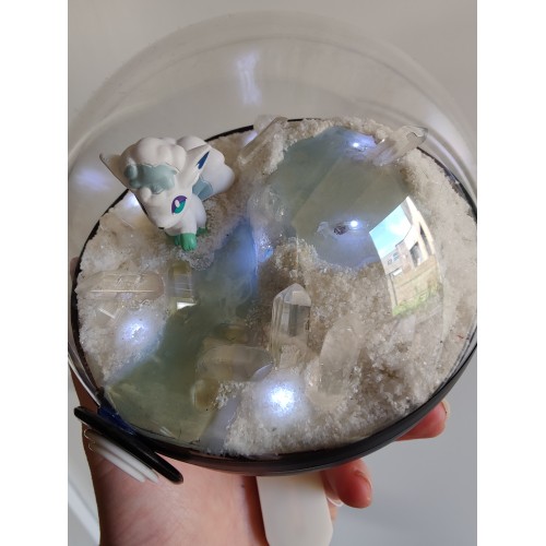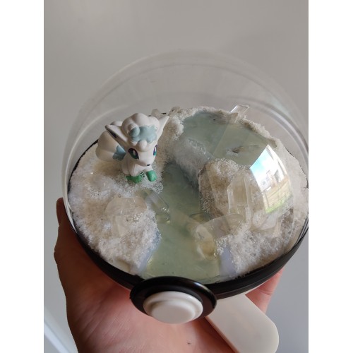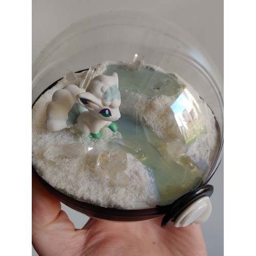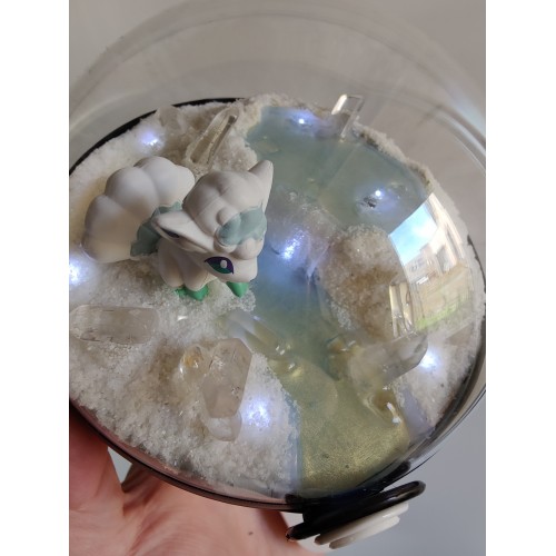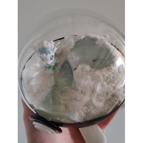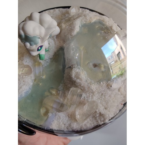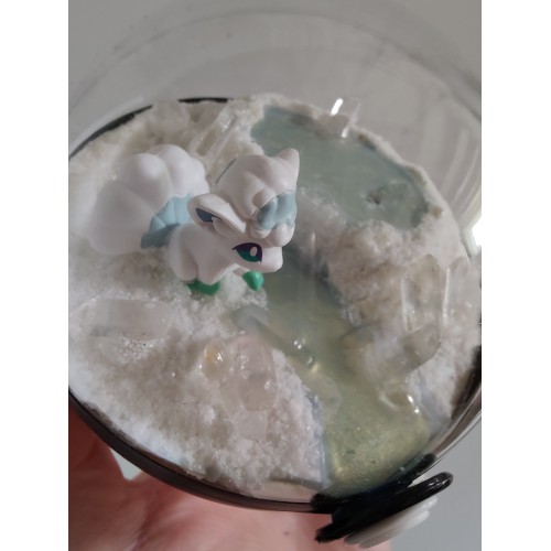 Diorama fait main accueillant une figurine pokemon de Goupix version Alola.