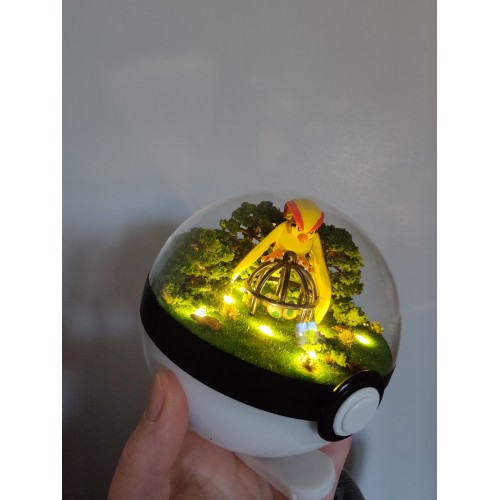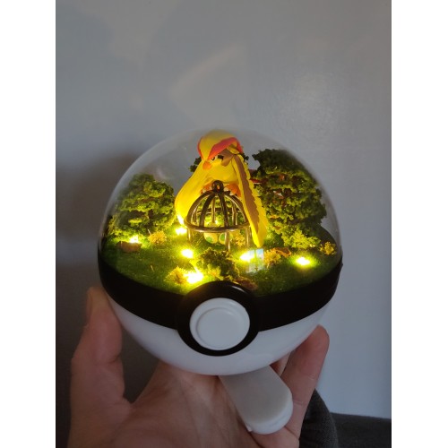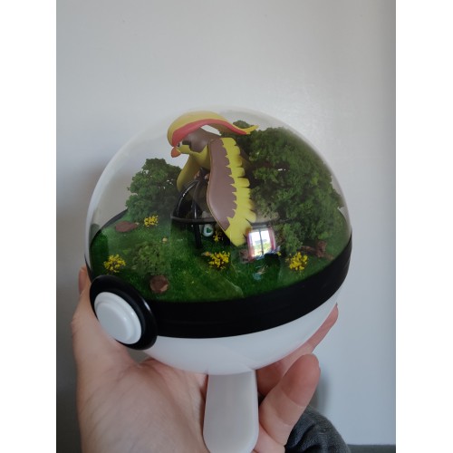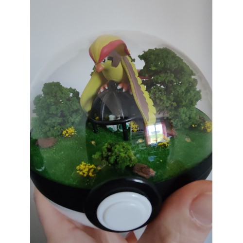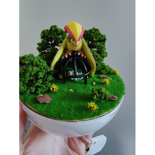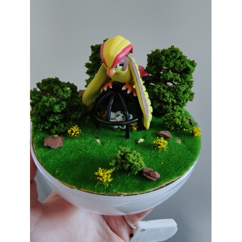 Diorama fait main accueillant une figurine pokemon de Roucarnage.