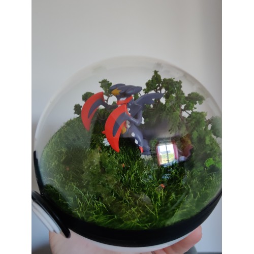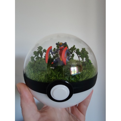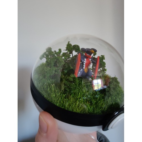 Diorama fait main accueillant une figurine pokemon de Mega-Carchacrok.